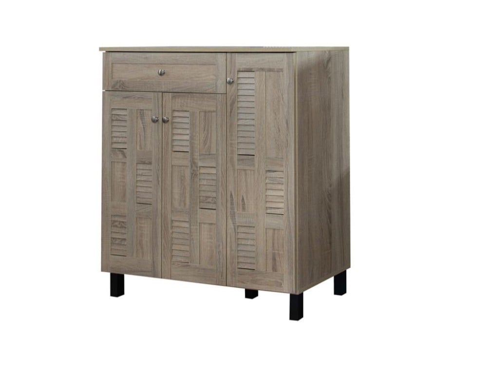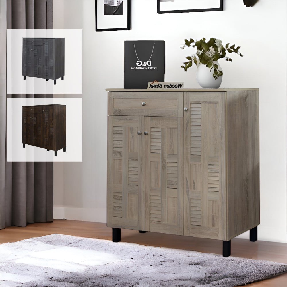 خزانه احذيه 3 ابواب رمادي وبني وخشبي