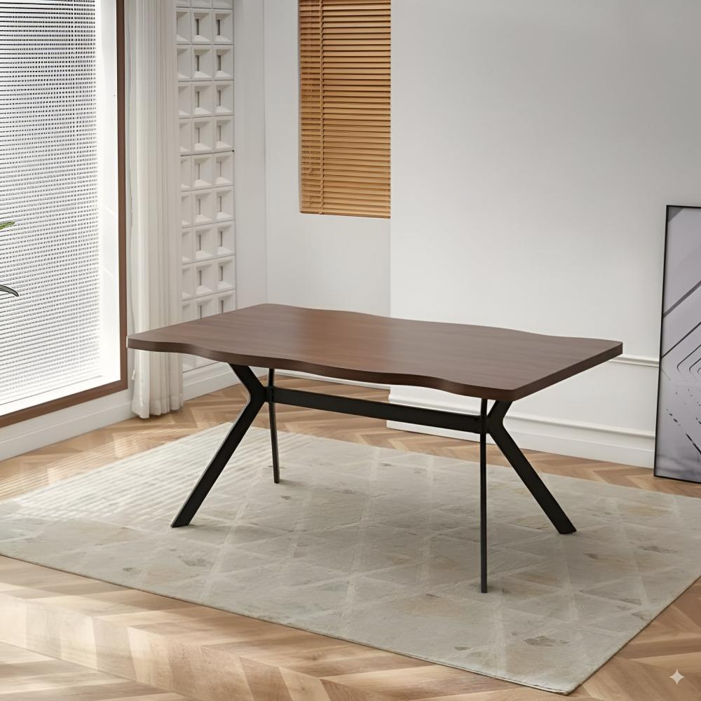 أضف لمسة عصرية وأنيقة إلى منزلك مع طاولة الطعام المودرن ذات التصميم الفريد الذي يجمع بين الخشب الطبيعي الفاخر والأرجل المعدنية القوية.