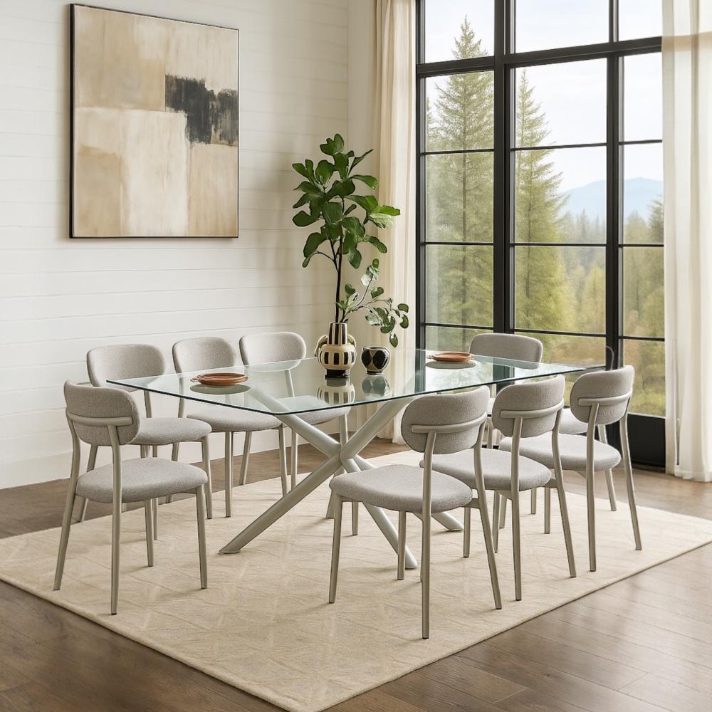 - تصميم مودرن يناسب مختلف أنماط الديكور الداخلي ويمنح غرفة الطعام طابعاً عصرياً جذاباً