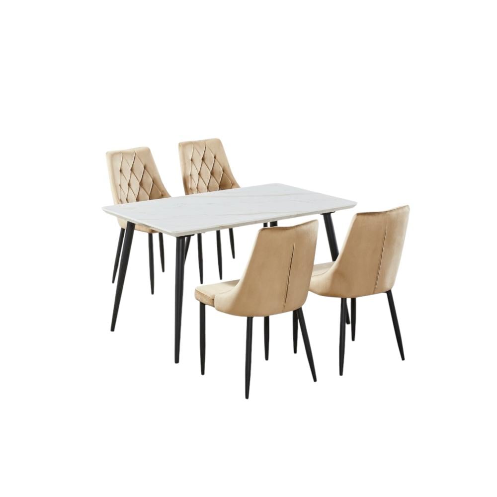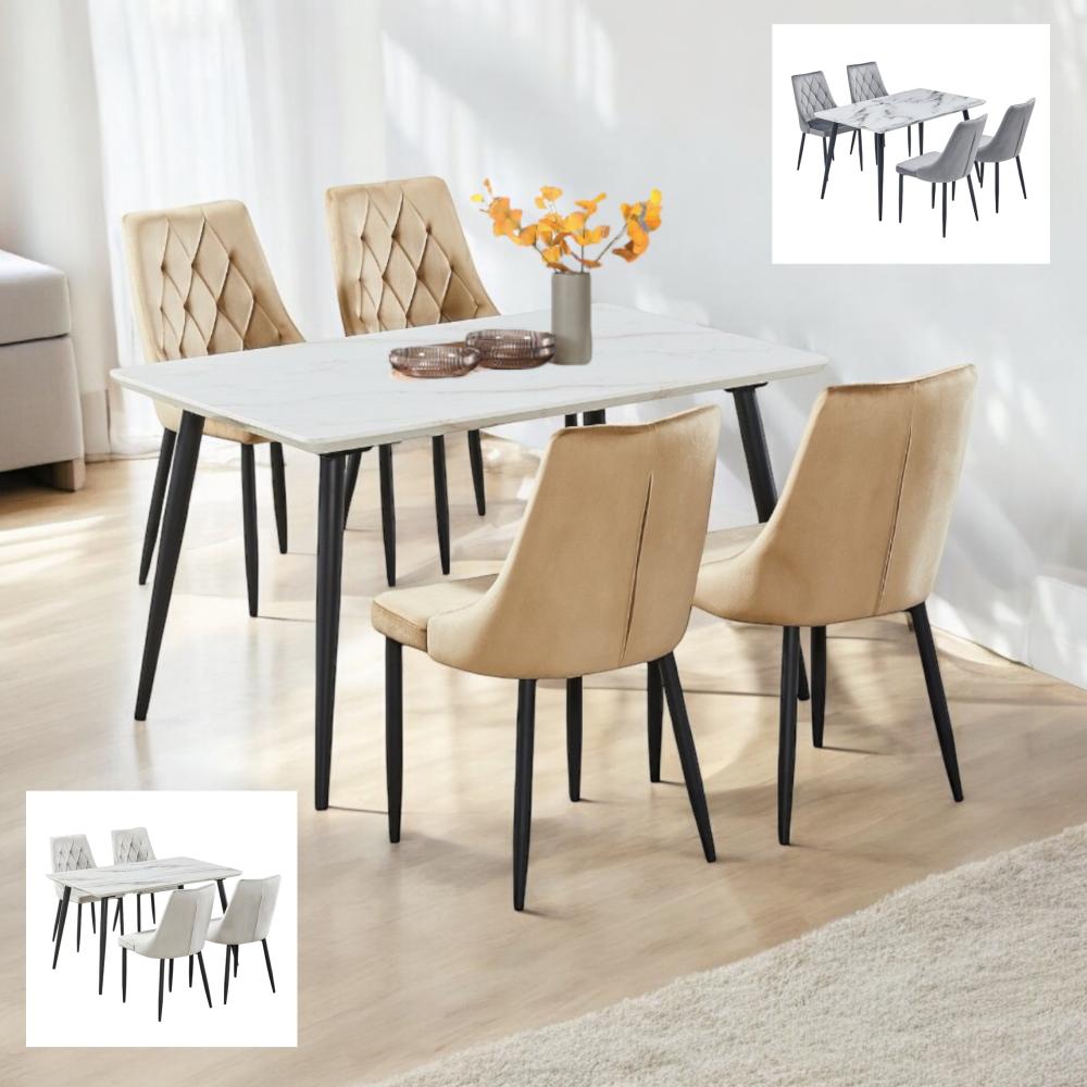 طقم طاولة طعام 4 كراسي سطح خشب رخامي قواعد حديد متينه ذات جوده عاليه متوفر بالوان متعدده لتناسب غرفتك